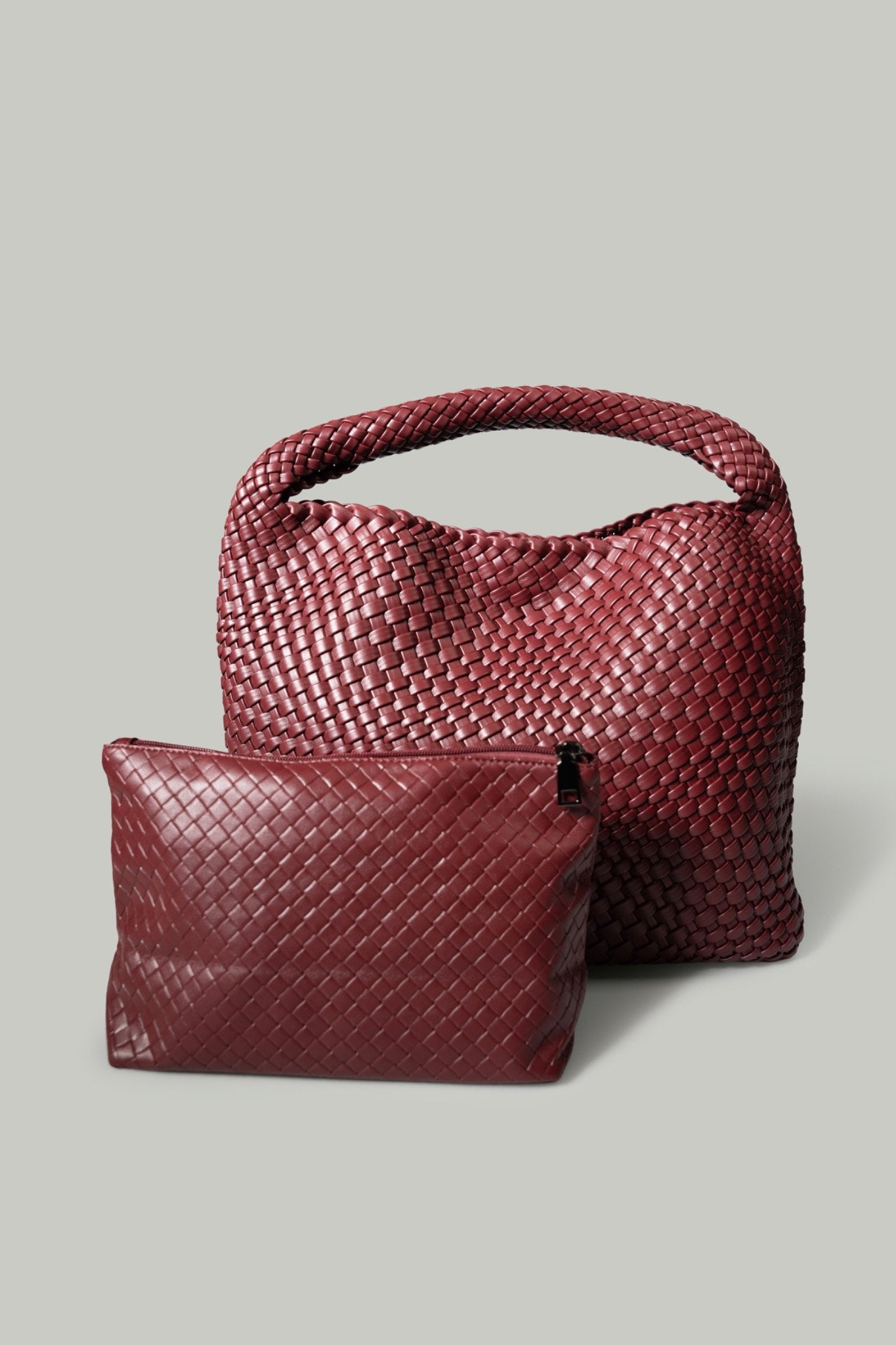 Soft woven shoulder bag with slouchy shape. The textured weave gives the bag a natural, handcrafted feel while keeping it lightweight to carry.