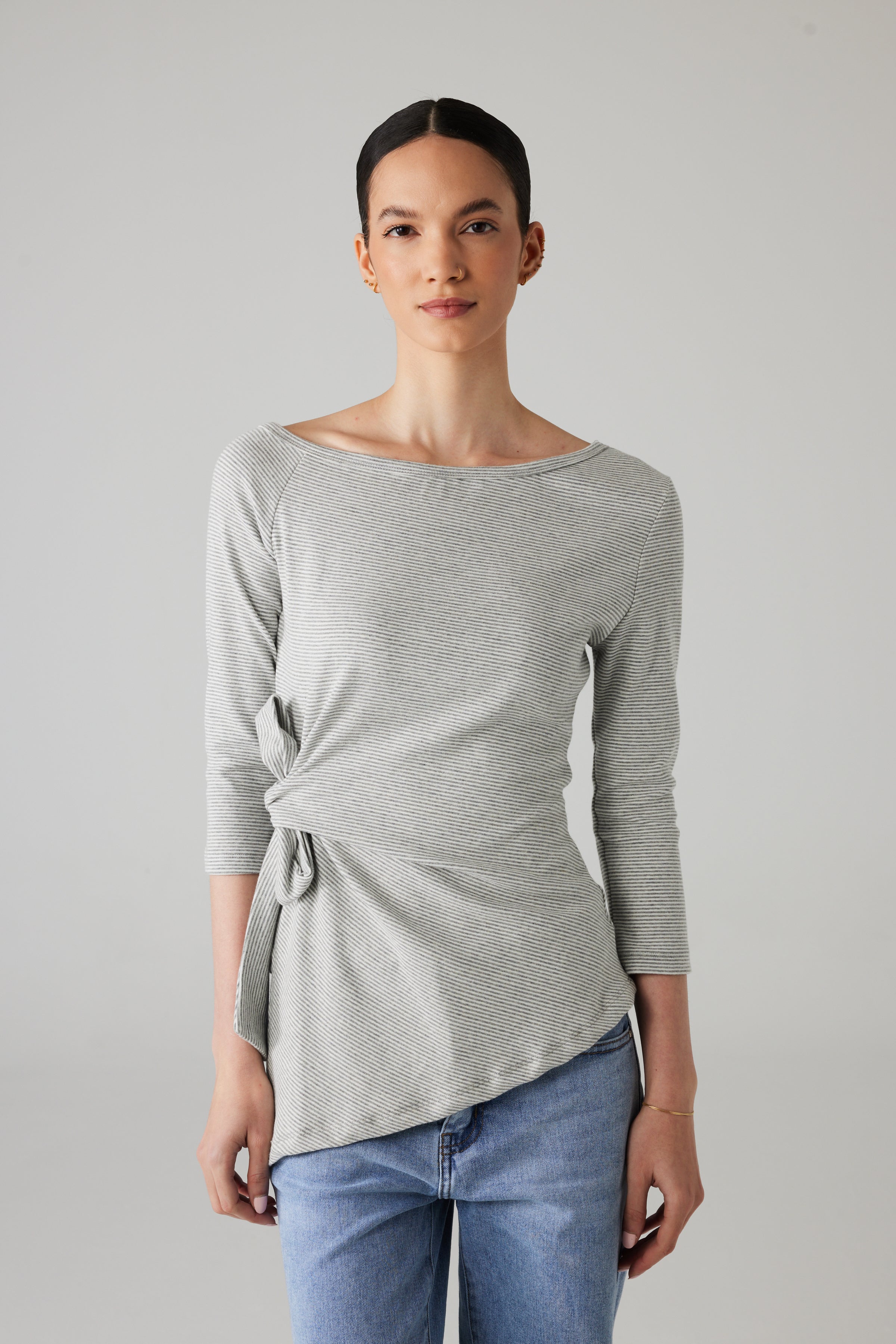The Luné Wrap Top features a side tie that cinches the waist for a flattering shape. The long sleeves and soft, lightweight feel make it perfect for layering in spring, while the longer wrap detail adds a stylish, effortless touch. Easy to wear with jeans or tailored trousers.