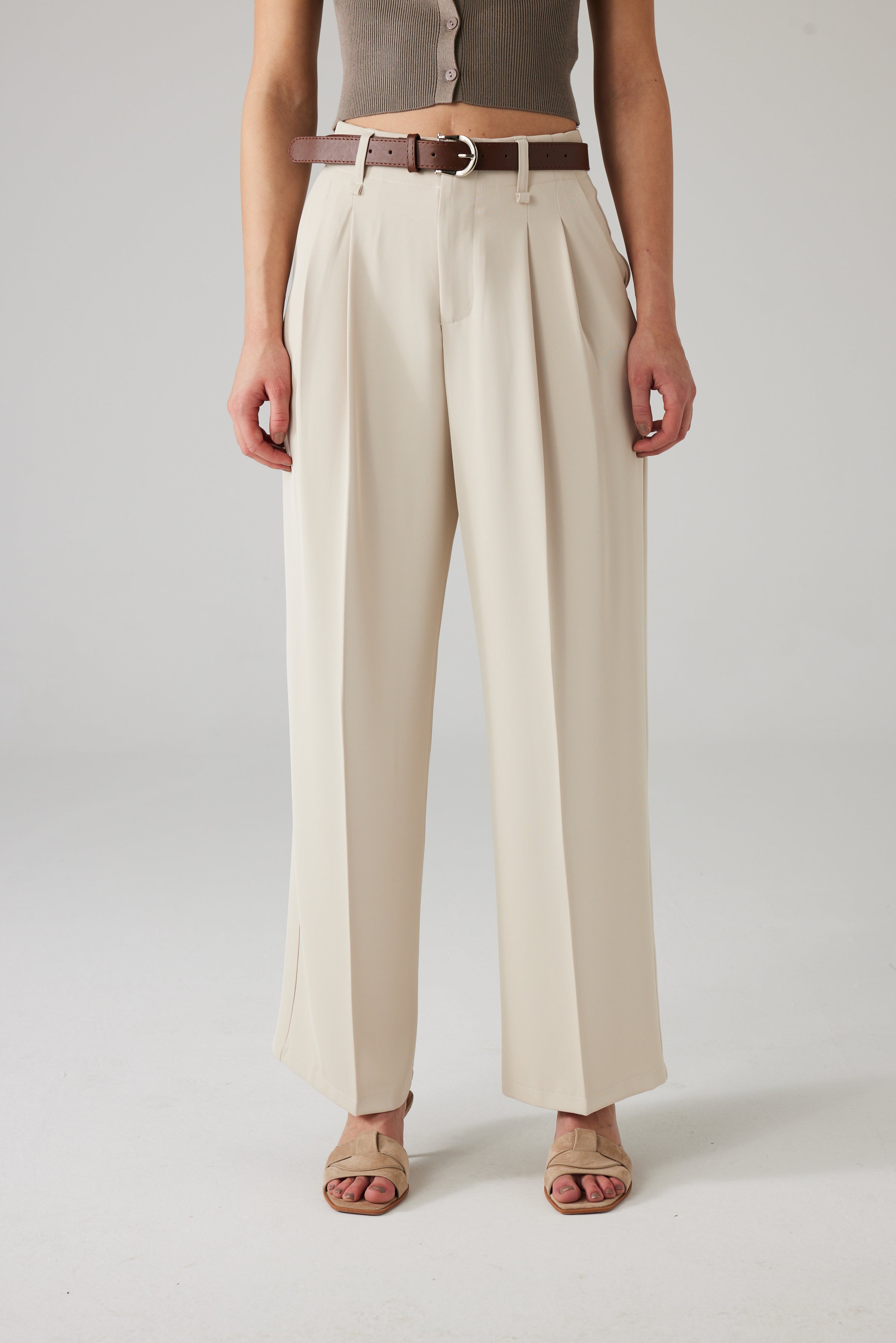 The Celora trousers are designed with a flattering high waist and a softly tailored wide-leg fit for an elegant, effortless look. Finished with front pleat details, side pockets and a matching belt, this style combines comfort with a polished silhouette that works from day to night and comes with a belt.