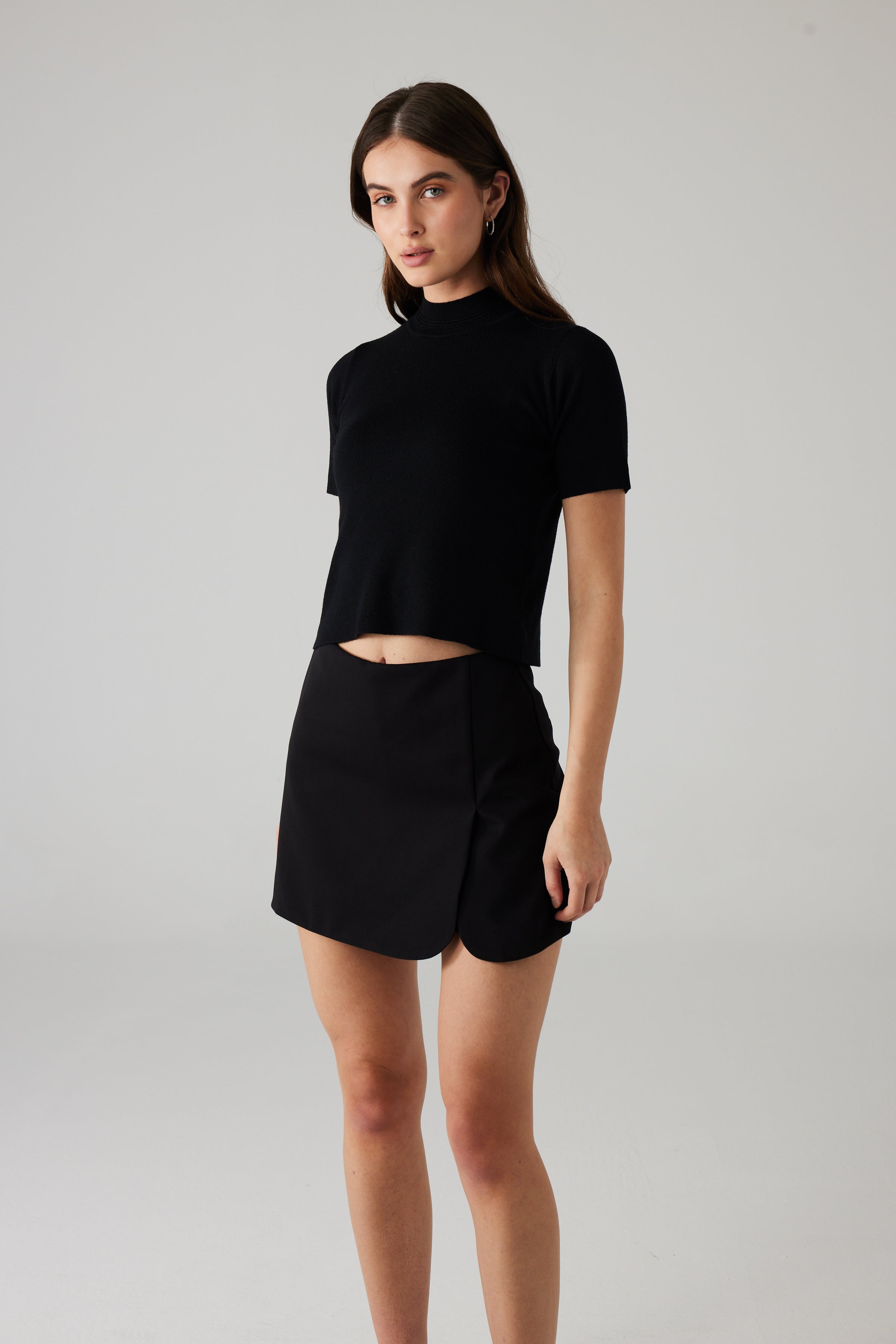 The mini cut-out skirt is a sleek and modern essential designed to make a subtle statement. Featuring a clean, minimal silhouette with a unique cut-out detail, it adds an edgy touch while maintaining a refined look. The high-waisted fit flatters the figure, while the short length enhances its contemporary appeal.